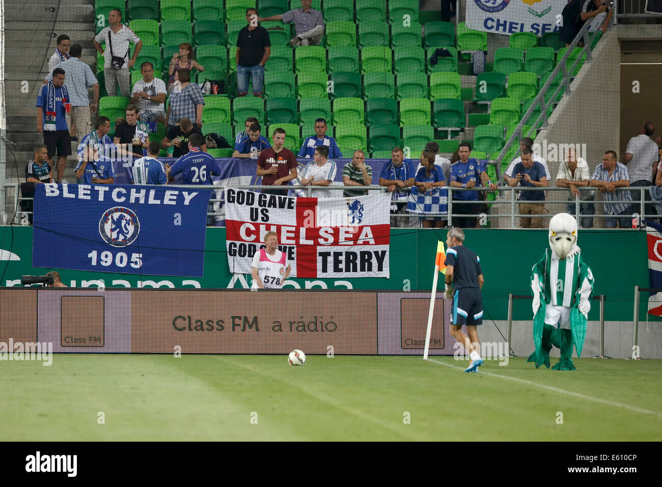 Budapest Ungarn 10 August 2014 Fans Von Chelsea Und Der Maskottchen Adler Der Ftc Bei Ferencvaros Vs Chelsea Stadion Eroffnung Fussball Match Bei Groupama Arena Am 10 August 2014 In Budapest Ungarn Bildnachweis